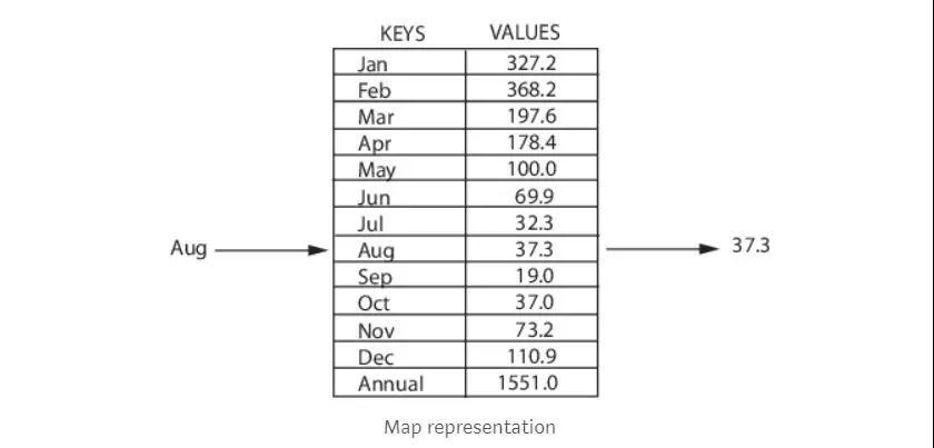 Map是容器的一种,也属于一种数据结构,它将数据存储在键/值对中,且每个键是唯一的。 map有时也称为关联数组或字典,通常被用于快速查找数据。 Map可以进行以下操作: