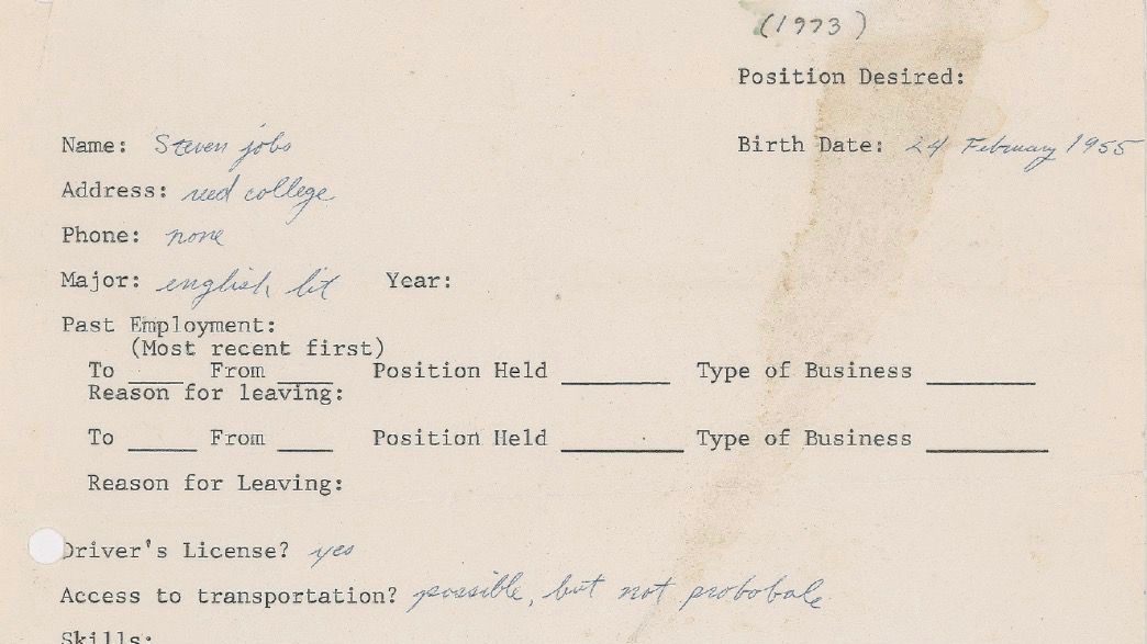 乔布斯求职简历拍出17.4万美元高价