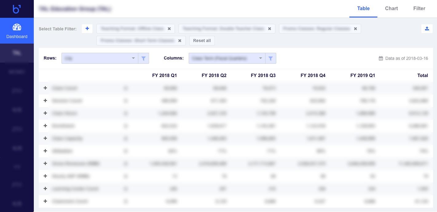 陈沐告诉36氪,百观科技的数据来源于公开渠道,百观科技在收集数据后,会将数据进行各种维度的处理,方便客户根据自己的投资逻辑提取所需数据维度。比如,百观科技抓取某教育机构的数据后(课程数、开班数、报名数等),会根据不同科目、时间、年级、地区等维度进行分类,客户在面板中访问时可以选择条件获取数据。
