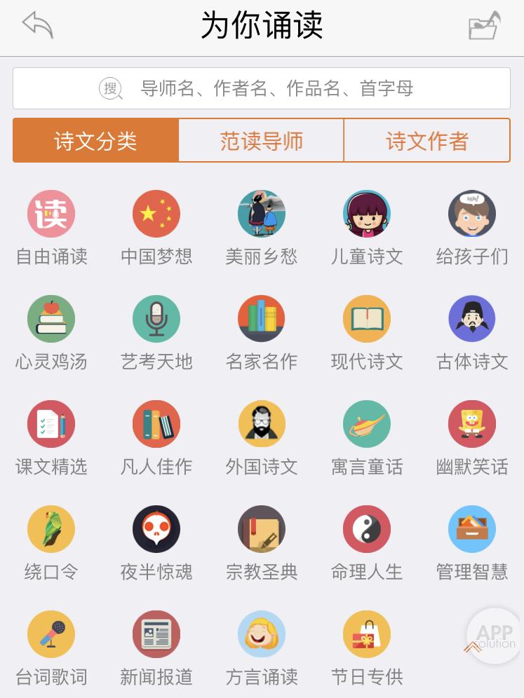 《为你诵读》是一款较为专业的诵读配音软件,诗文分类众多,如古体诗文,宗教圣典,新闻报道等。