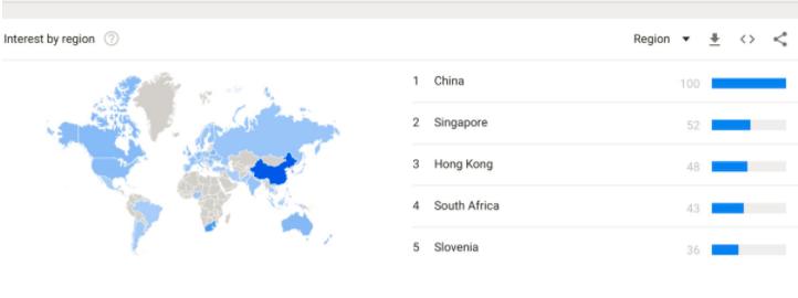 谷歌搜索智能合约最多的国家地区:中国、新加坡、中国香港、南非和斯洛文尼亚