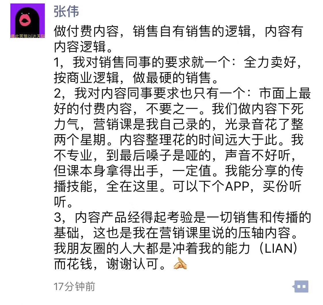 创始人张伟也在朋友圈回应了这一做法的初衷: