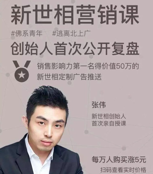这次是新世相,分享自己几次的成功的营销经验课程。和网易、三联不同的是:购买人数每增加一万人,价格增长5元,从9.90涨到了49.90元。