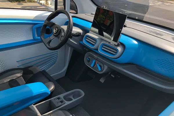 ▲“LSEV”的内饰中,只有方向盘、座椅、液晶屏等少数零部件不是由3D打印完成