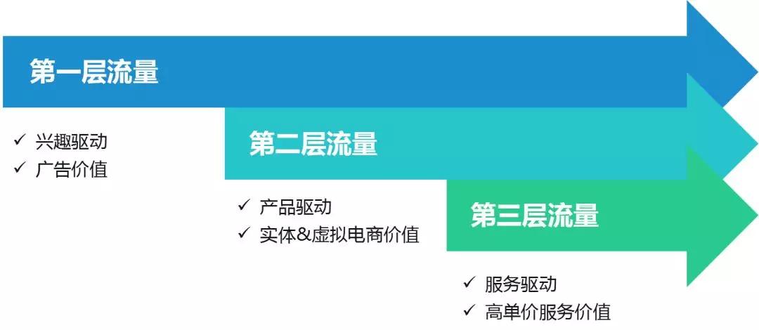 3)第三层流量:流量由服务驱动,这类流量将转化为高单价服务消费