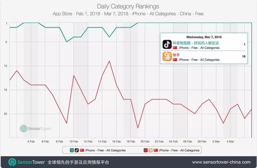 唯一的例外是短视频。虽然其鼻祖 Vine 在 2013 年就早早亮相,但它在被 twitter 收购后一直处于边缘化的状态,始终没有成为时间线的主流。相反,短视频在中国却受到了极大的追捧。像今日头条旗下的抖音,自春节档开始到现在已经持续霸占中国 App Store 榜首近三周,甚至打破了《王者荣耀》去年七月初创造的 18 天最好成绩。