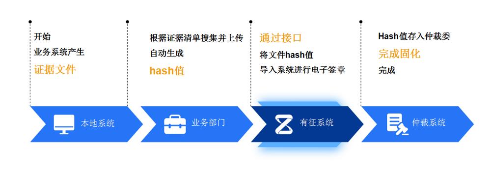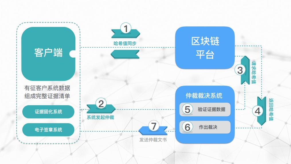 有征的做法是在客户本地系统将业务文件生成哈希值同步到链上,已完成“证据固化”,争议一旦发生,仲裁委可以将其所收到的材料的哈希值与链上的做对比,即可验证数据有无被篡改。有征认为,这样的做法既可以保证用户隐私,又能验证数据有无被篡改。