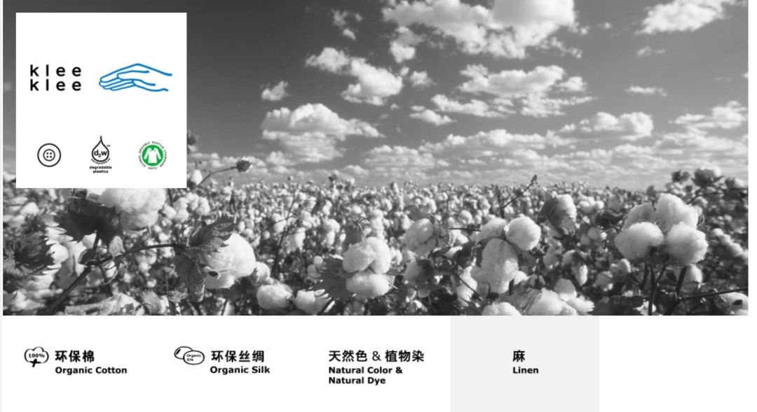 素然官网的klee klee品牌页面,所有的材料都是选用天然环保
