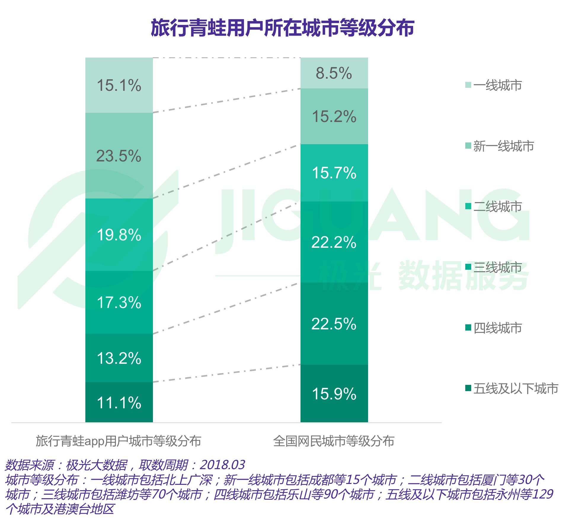 根据极光大数据显示,旅行青蛙用户中38.6%来自一线或新一线城市。