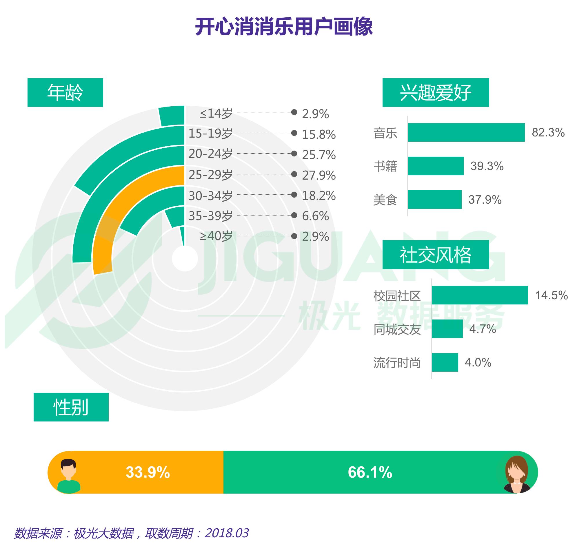 根据极光大数据统计,开心消消乐用户中27.9%为25-29岁,66.1%为女性用户。