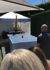 当然,今年MARS除了带狗出场,贝佐斯还在现场打了一回乒乓球,只不过与他对战的不是某个人类选手,而是一台多轴机器人。