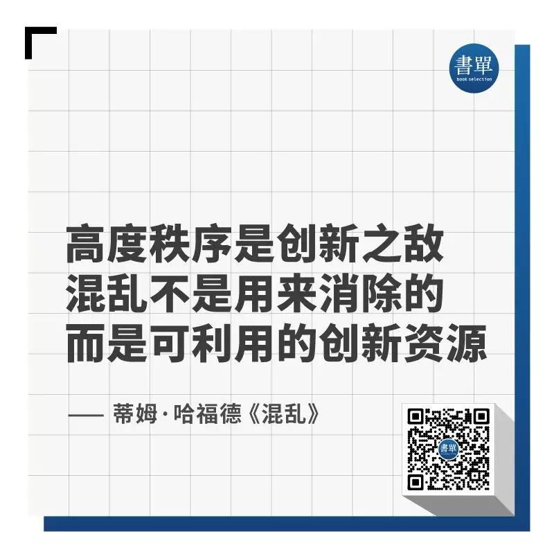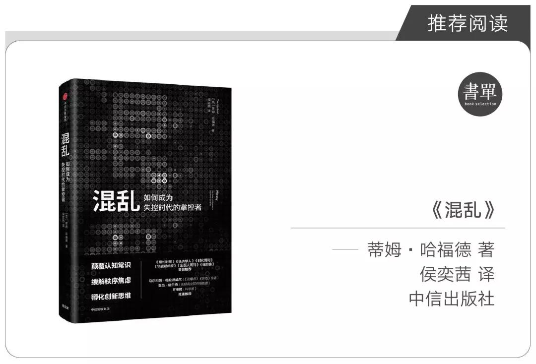 尤其在这个不确定增加的时代,《混乱》的理念尤其值得一看。如果说秩序和整齐是工业时代的审美和要求,那么拥抱混乱则是目前这个时代的基本素质和能力。
