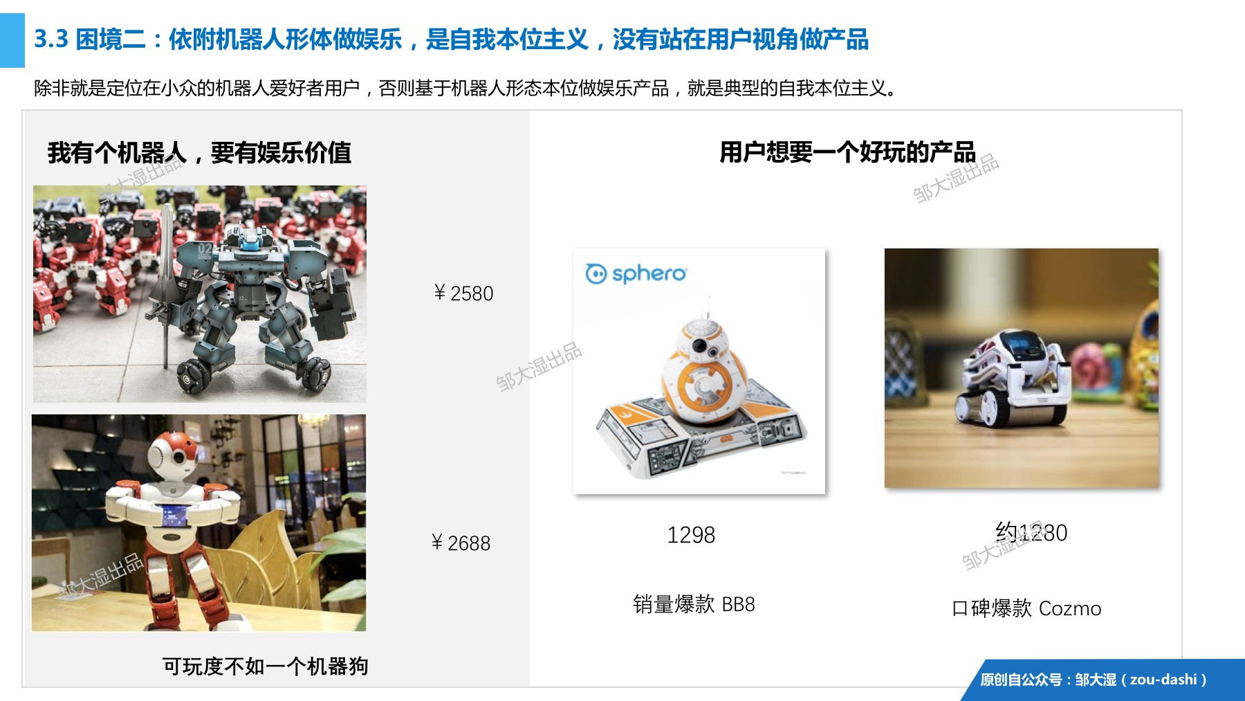 陪伴机器人,在当下只是一个科幻的未来产品,现实市场撑不起数千元售价;需要有智能玩具的务实心态才能做好,不能陷入到机器梦想自嗨;
