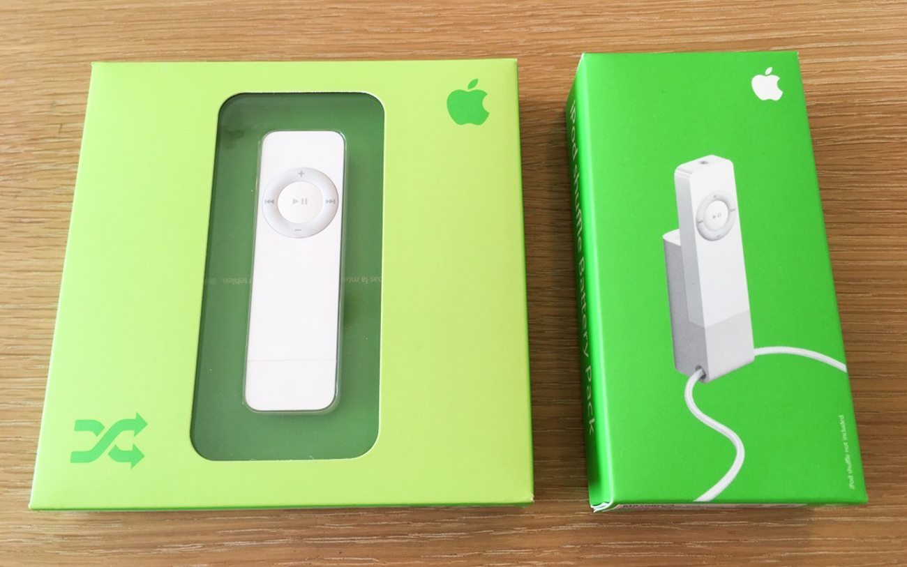 但初代 iPod shuffle 是一个另类,由于它采用的是 USB 接口,所以底座也是单独制作的,你别说,这个方方正正的底座还挺好看的。