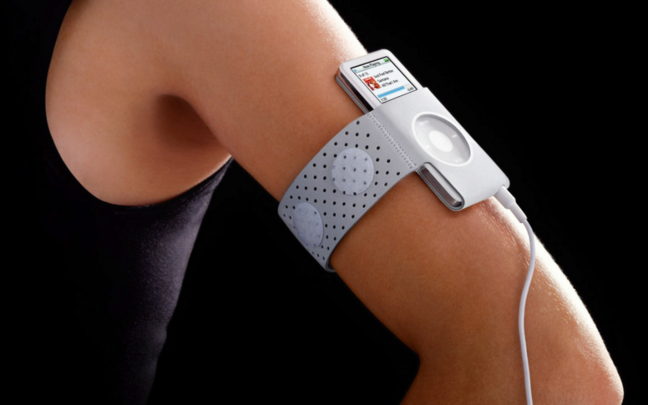 除了编织布和橡胶,苹果还曾在 2002 年为 iPod 推出过一款尼龙材质的背夹壳,起初是捆绑销售,之后也推出过单卖的版本。而在 2004 到 2010 年期间,为了满足运动用户的需求,苹果推出了一系列供 iPod mini 和 nano 使用的臂带套,经常健身听歌的朋友应该对这种配件比较熟悉,只是现在大家更愿意塞一台 iPhone 进去。