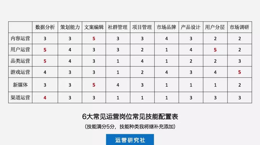 那对于没有还没入行(包括大学生和想转行做运营的人)和想全面发展的运营,可以多学习一些通识技能,因为在互联网企业的成长体系中,对于通识技能的也有不同的职级图谱(说人话就是,啥都会的运营也很有市场)。