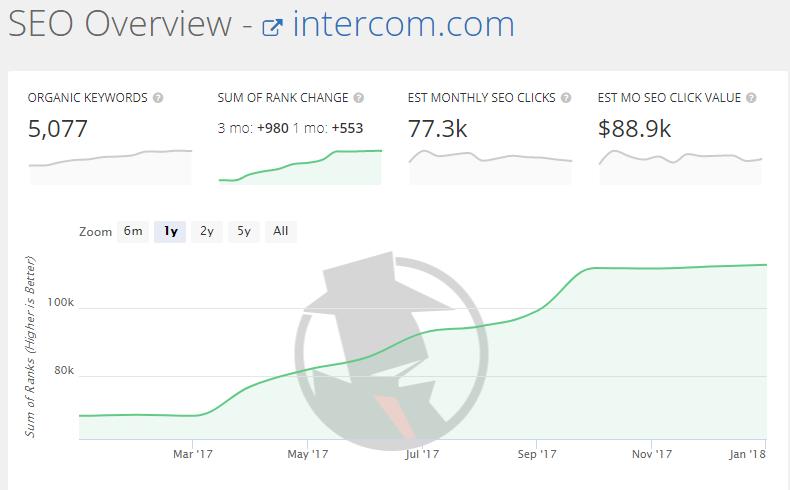 如果我们追踪Intercom最近几年的增长情况,就会发现,很明显Intercom一直在扩大自己的搜索和内容的可见性。