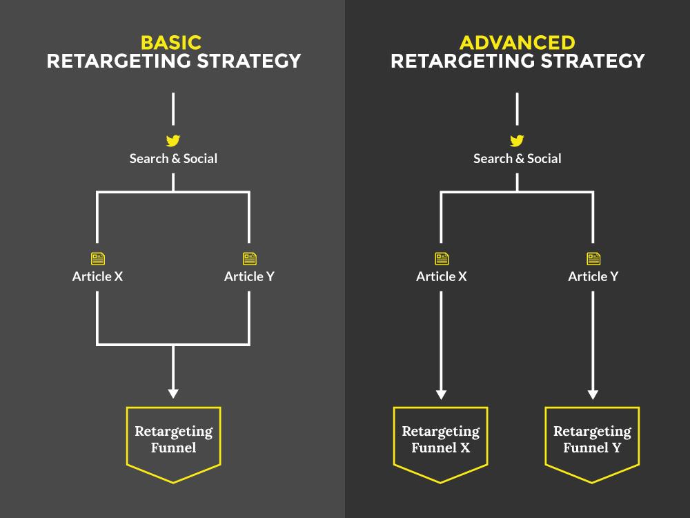 那么,为什么你要用同样的广告来重新定位这两组读者呢?这时,你可以进行细粒度的重定向,根据内容对你的受众进行细分,然后将他们推送到一个目标明确的漏斗中。