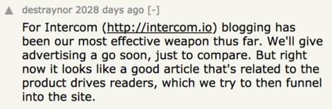 事实上,Intercom联合创始人Des Traynor几年前在HackerNews上发布的一个帖子中分享了他们的进展。他在帖子中提到了内容是如何成为他们的主要增长策略的: