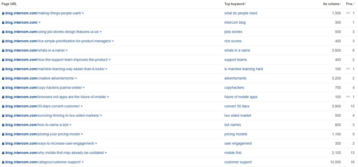 这种方法非常简单。通过瞄准这些关键字,Intercom为每一篇文章建立了可靠的入站流量。