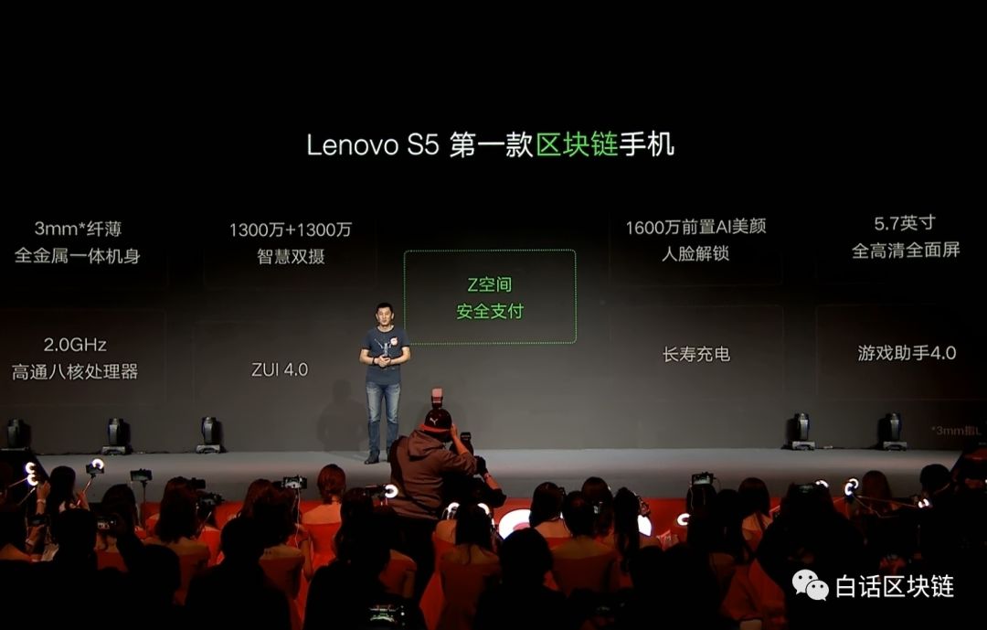 3月20日,联想正式发布首款主打“区块链”概念的千元新机—联想S5,不过发布会上并没有就此卖点展开讲述。