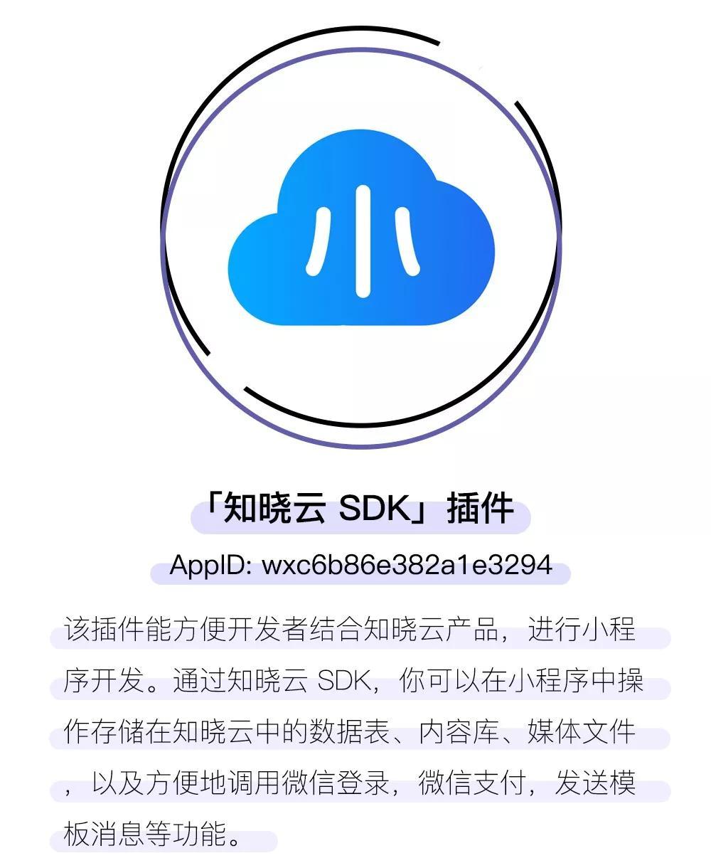 前不久微信小程序开放了小程序插件功能,知晓云在第一时间就着手知晓云 SDK 插件的开发,并成功通过了审核,「知晓云 SDK」成为首批过审的小程序插件。
