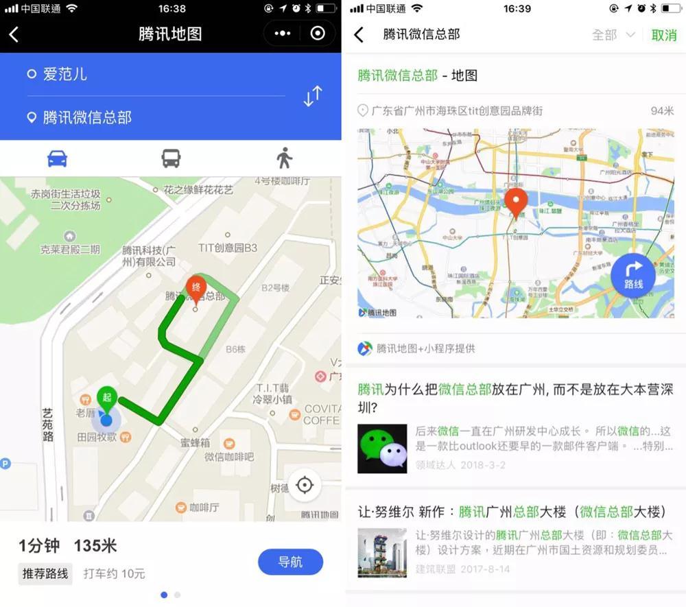 「腾讯地图 +」小程序的功能直达也是一绝