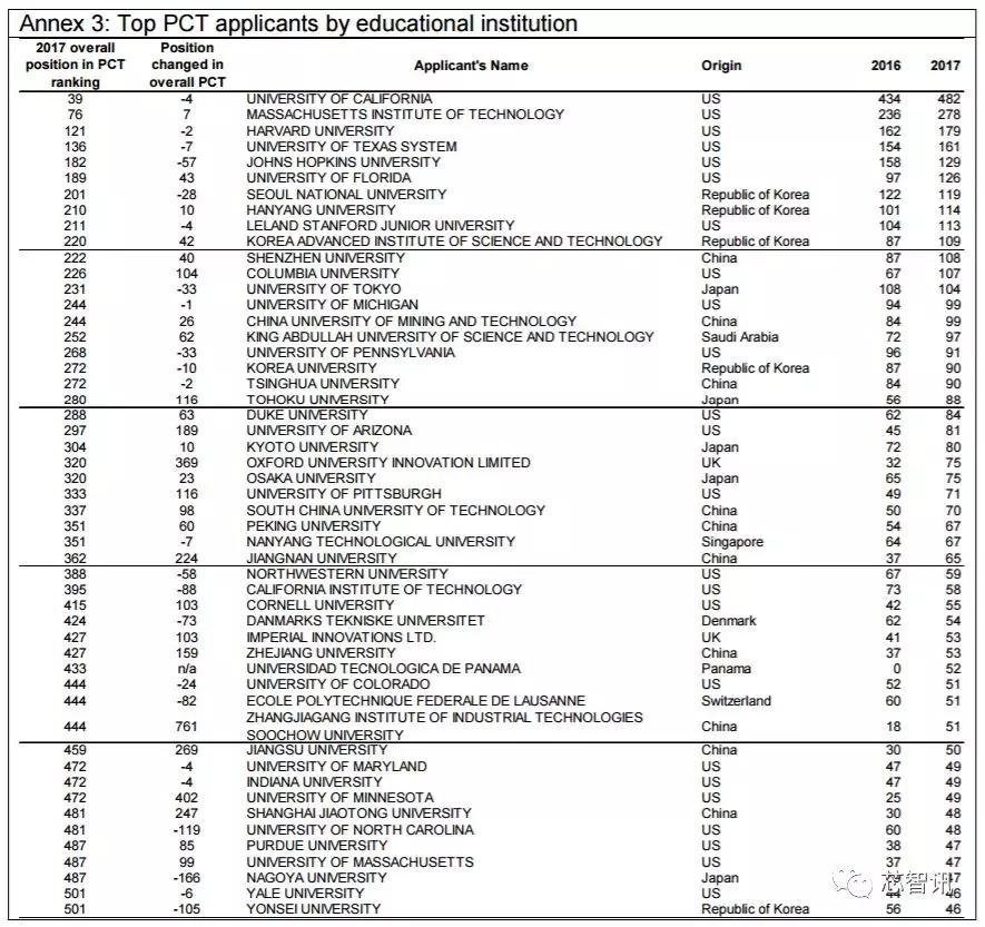 高校专利申请排名:美国高校继续领跑