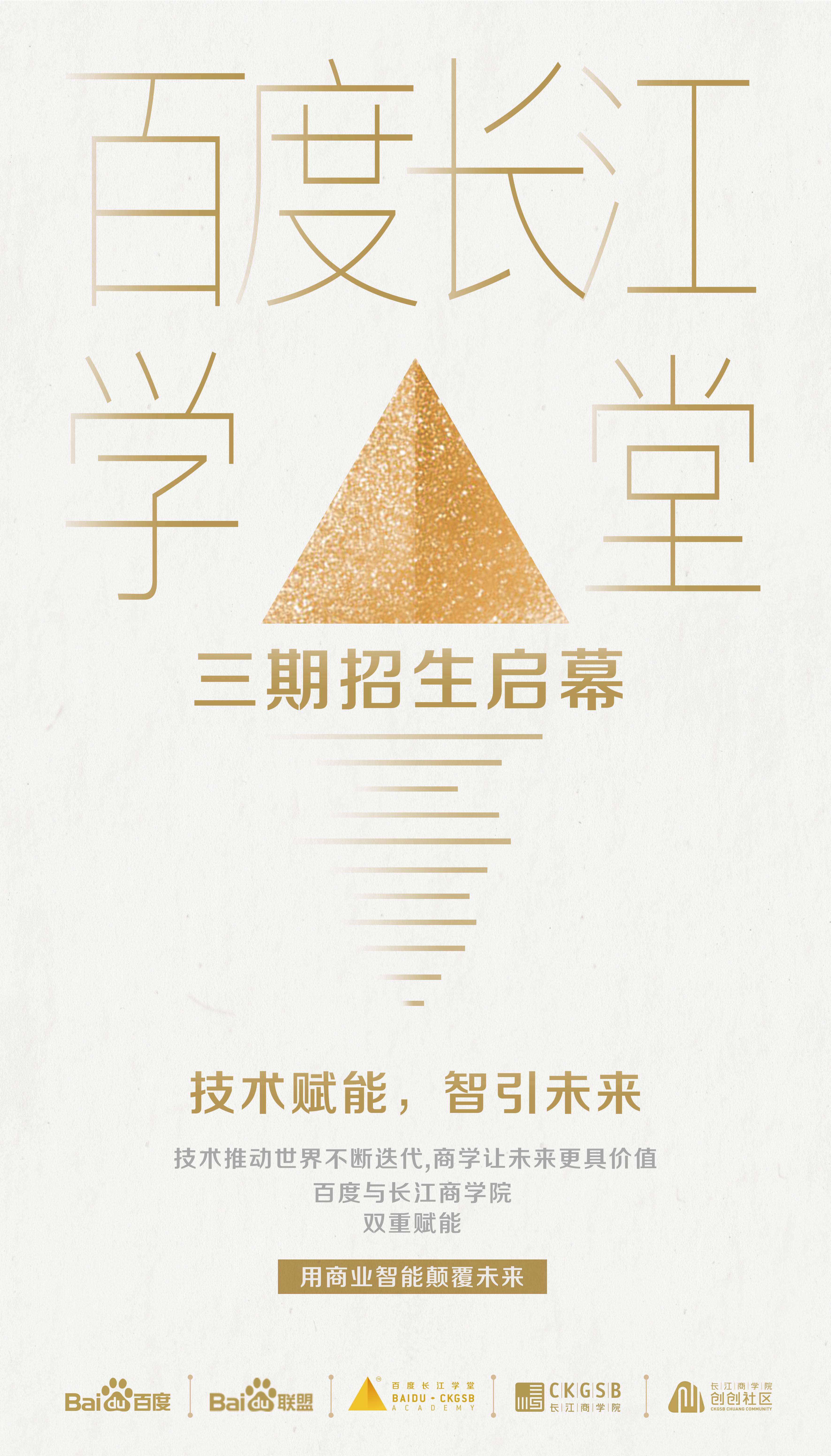 技术赋能,智引未来。百度长江学堂首期、二期班成绩斐然,三期班招生正式开启。技术推动世界不断迭代,商学让未来更具价值,百度技术与长江商学的双重赋能,带你一起用商业智能颠覆未来!