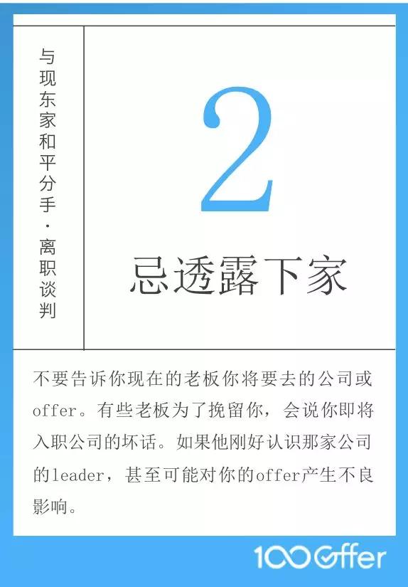 100offer 从以往的候选人离职培训经验中,概括出了以下几张职场老司机必备的「离职谈判宜忌签」,欢迎手动保存。