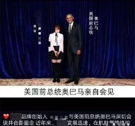 在这里举一个很有趣的例子:去年,美国前总统奥巴马出席了在上海举办的某场企业峰会,霎时间就在朋友圈火了。原因是大批微商在与奥巴马的握手合影后,将这些图片 / 视频发到了朋友圈,并表示自己的产品得到了奥巴马的高度认可。