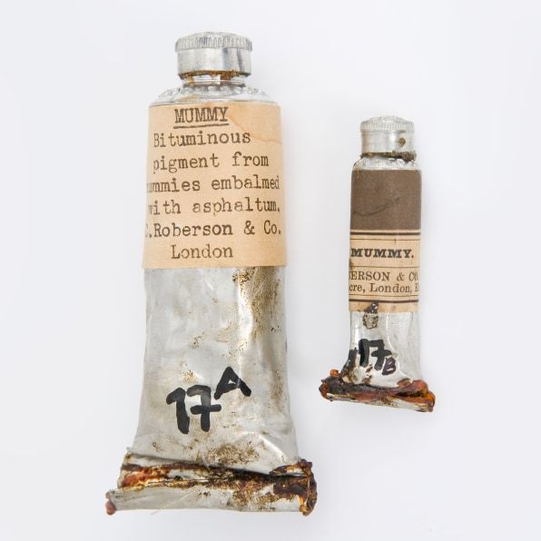 在这里,木乃伊并非形容词,这种棕色是真真正正是从木乃伊身上提炼出来的,这种从木乃伊裹尸布上提取棕色树脂制成的颜料,在 18、19 世纪曾一度非常流行,还有更诡异的传说是,这种颜料来自木乃伊的肉,而且肉质越好颜色越饱满。