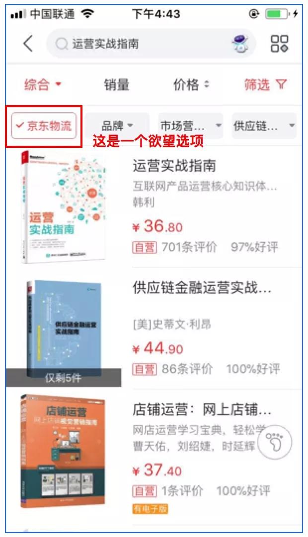 生活中,我越想得到某个东西,欲望就会翻倍涨。在价格摩擦上就会越不加思索,更关注物流。所以我用京东的时候多数首选“京东物流”,京东物流靠提升物流速度放大了人的欲望。