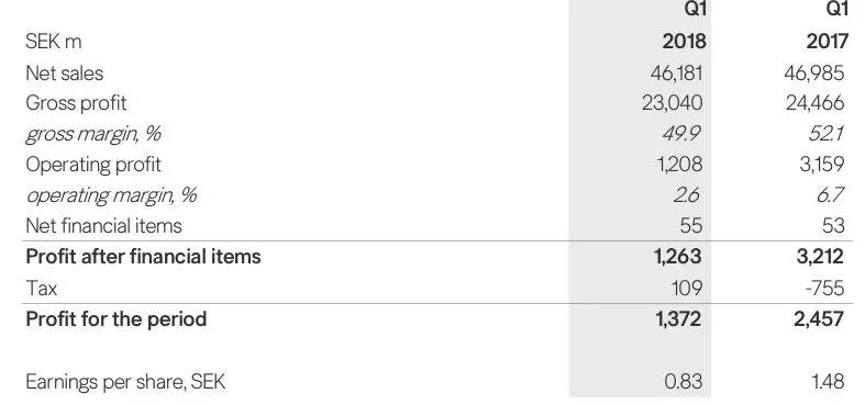图为H&M集团第一财季详细数据,点击大图查看更清晰