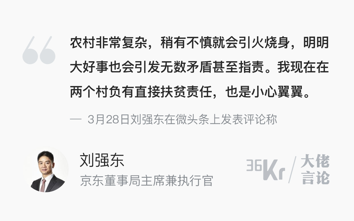 刘强东表示,“我现在在两个村负有直接扶贫责任,也是小心翼翼。”