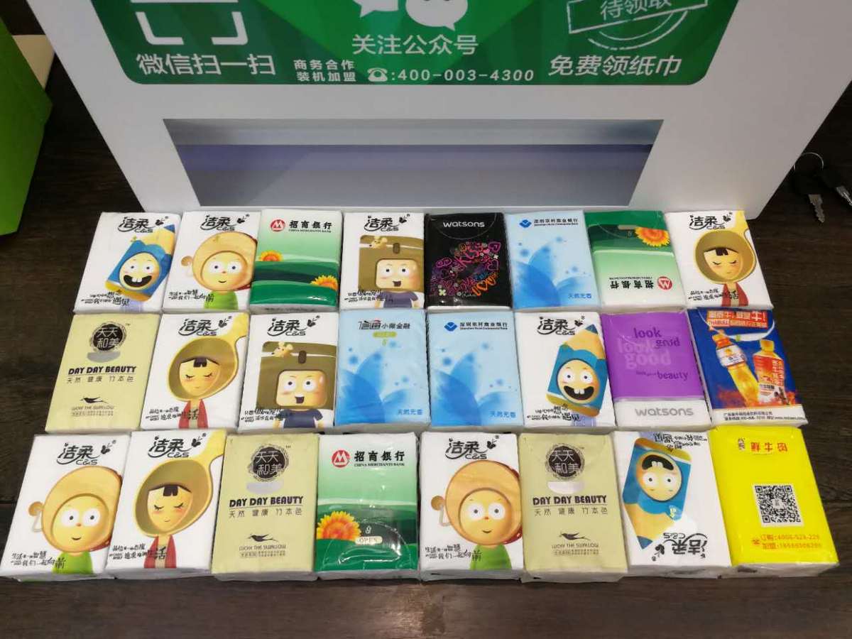 广告变现。包括机身广告和纸巾广告,机身广告则包括海报广告和视频轮播广告两种,小型机柜上可以张贴海报进行广告投放,大型机柜则可以视频、海报兼顾,在机身不同位置投放不同的广告。纸巾包装广告则采用直接印刷的形式,