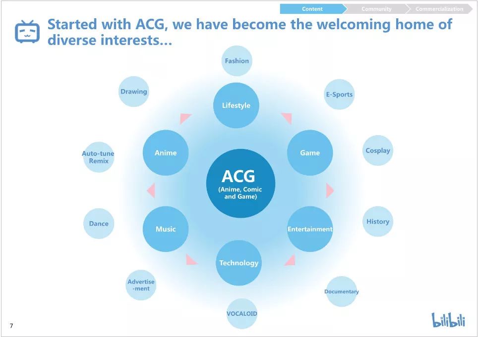 曾经的B站,确实起家于ACG文化(anime- comics-game/动画/漫画/游戏),但如今打开B站,除了ACG,还有一堆诸如“直播,音乐,纪录片,电影,生活,科技,时尚,鬼畜“等栏目。