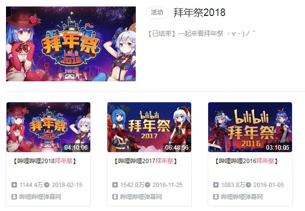 2010年,B站40位自发组织的UP主齐心献力了一个春节拜年的节目集锦,这是拜年祭的开始。而到了2017年,参加B站拜年祭的UP主已经将近300位。