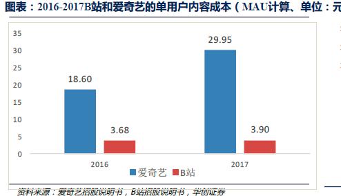 华创证券互联网分析师谢晨按月活的计算显示,B站的单个用户获取成本为4元/MAU,爱奇艺的单用户获取成本则已经达到了29元/MAU。