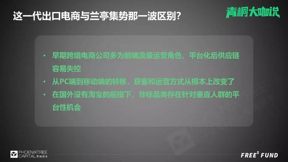出口电商并不是一个崭新的赛道,十年前就已经有了,比如兰亭集势。很多同行和创业者会问我:“为什么现在还要去投资出口电商?现在投资这个方向和以前最大的区别在哪里?”我认为中间区别还是很大的。