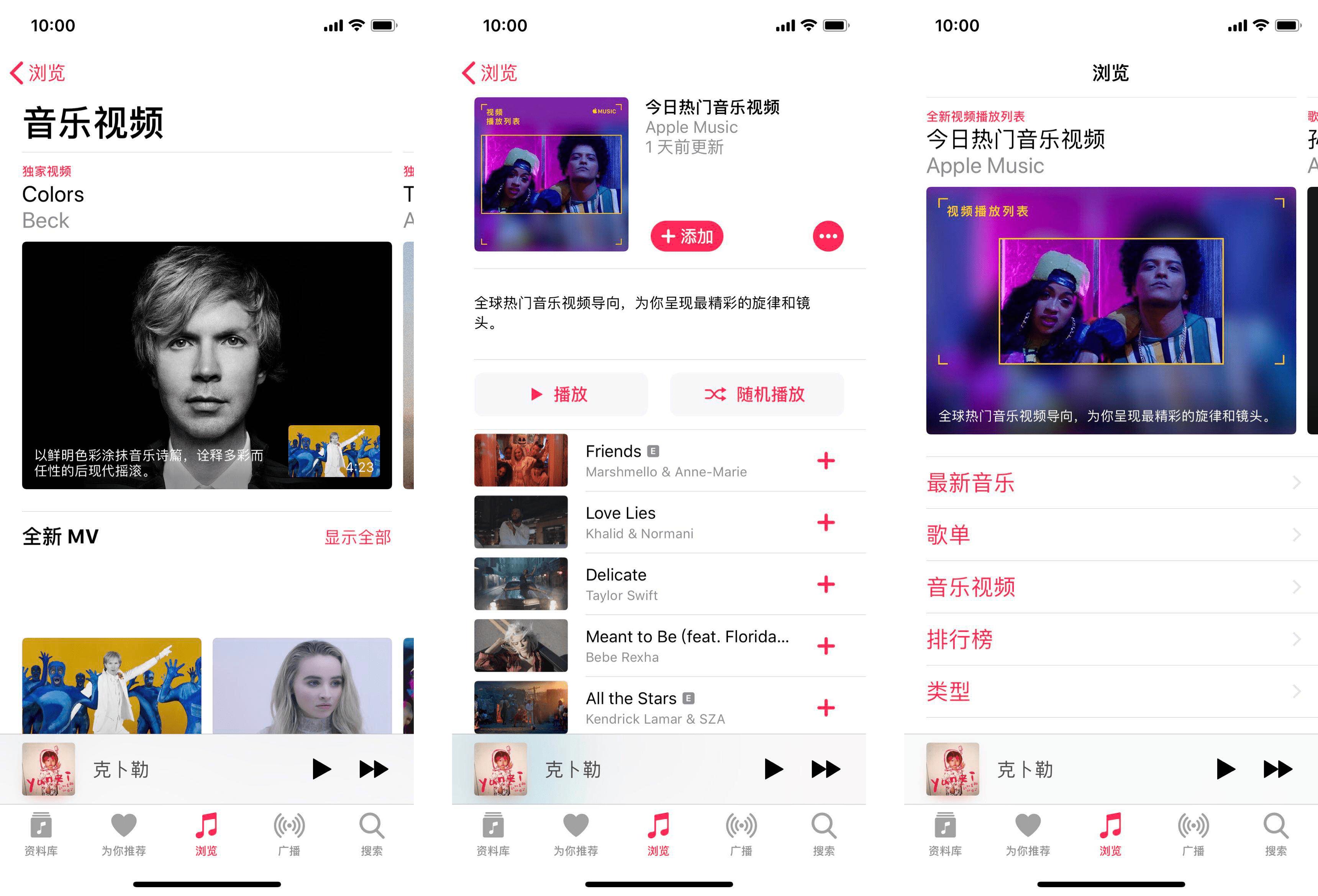 昨天 iOS 11.3 还未正式推送前,就有用户发现音乐应用中多了一个「音乐视频」的板块。目前该板块中内容较少,能看到一些新 MV 和 Apple 提供的独家内容。
