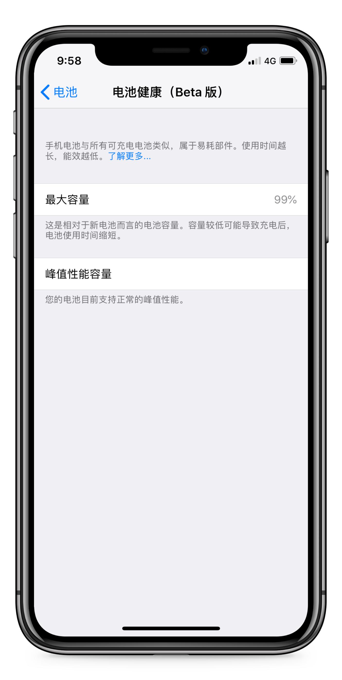 苹果在去年因为「降频门」饱受争议,iOS 11.3 中终于为 iPhone 加入了关于电池健康的设置。用户不仅能看到电池当前的最大电池容量和峰值性能信息,还可以选择是否开启「性能管理模式」来降低性能、延长电池寿命。