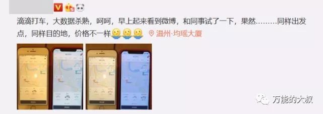 在美团打车3月21日高调宣布进军上海市场的三天之后,也就是3月24日,来自上海的一位微博用户爆料,滴滴存在利用大数据“杀熟”,即分别用iOS和安卓系统的手机叫车,预估的费用不同,iOS的价格明显更高,一波科技媒体纷纷跟进。虽然滴滴CTO随后进行了否认,但这种对用户“杀熟”的印象已经深深留在了普通消费者的脑海中,“你看,滴滴真够坏的!”又把上面的第3条重复了一遍,而微博大V选择曝光滴滴的这个时间点,很有意思。