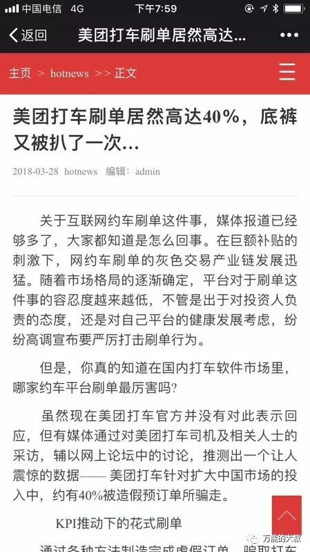 那么一个关键的问题来了,如此偏门的一个网站,如此低级的一个标题,为什么会出现呢?这就是回到上文讲的一个“舆论”:上海的用户越来越讨厌滴滴了,看看,滴滴不止存在各种问题,滴滴的PR竟然还黑竞品?还犯这么低级的错误?这两篇文章的几张截屏,经由美团这位高管的“揭黑”,再次加深了用户对滴滴的讨厌。