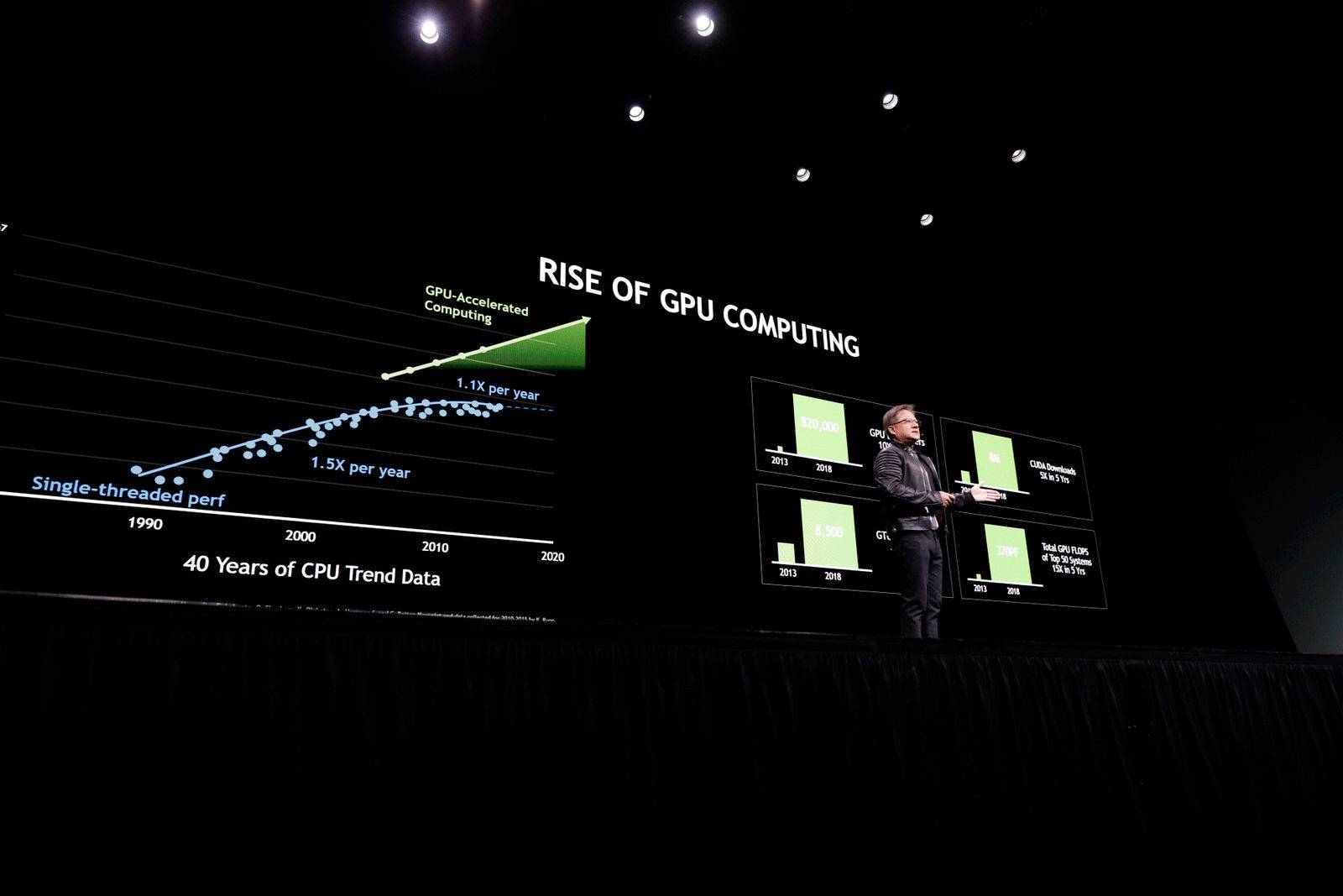 被网友亲切的称为「黄教主」、「核弹厂厂长」的英伟达 CEO 黄仁勋在今天的 2018 GTC 上讲的最多的一句话是:买得越多,省得越多。(Buy more GPUs , the more money you save.)