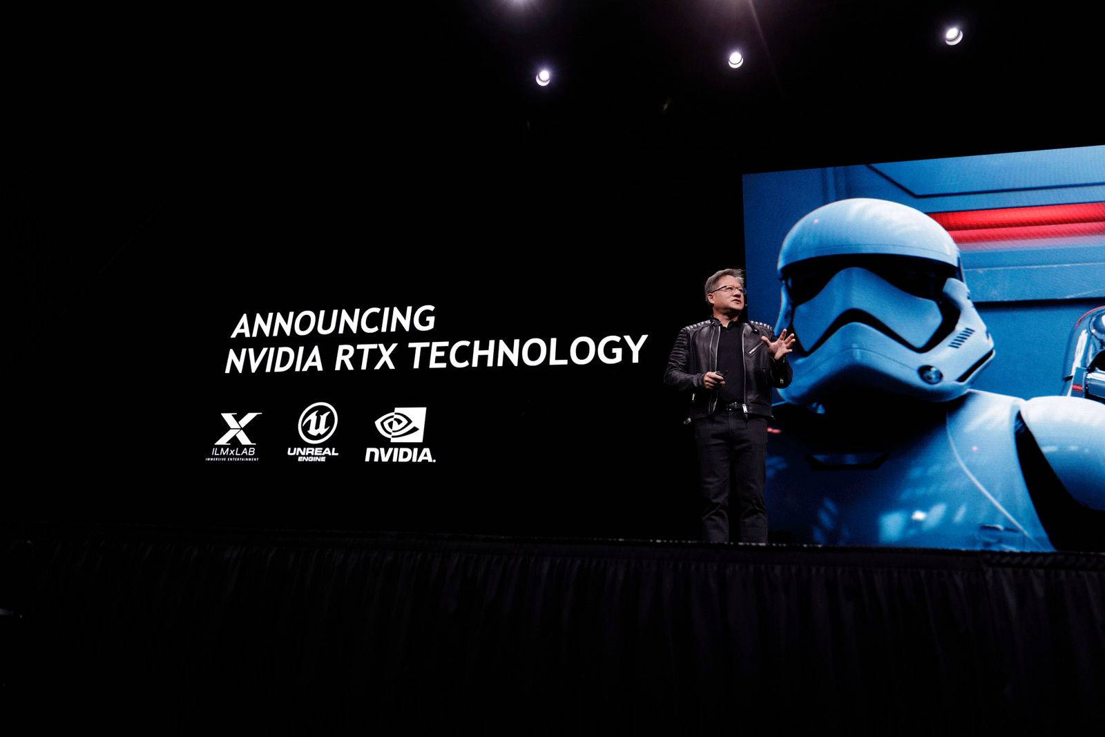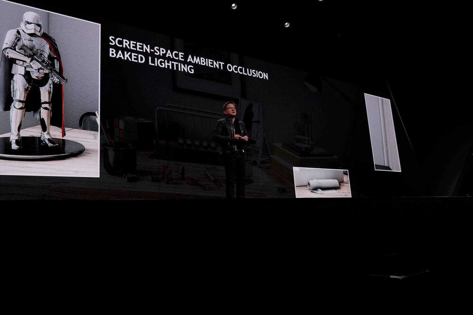通过现场实时渲染 Star Wars 里的场景,来展示光线追踪的效果,可以说用肉眼你已经几乎分辨不出来计算机渲染和真实的电影画面了。而这也被称作世界上首次以实时方式呈现光线追踪的效果,更是拥有十倍于单独使用 CPU 的渲染速度。