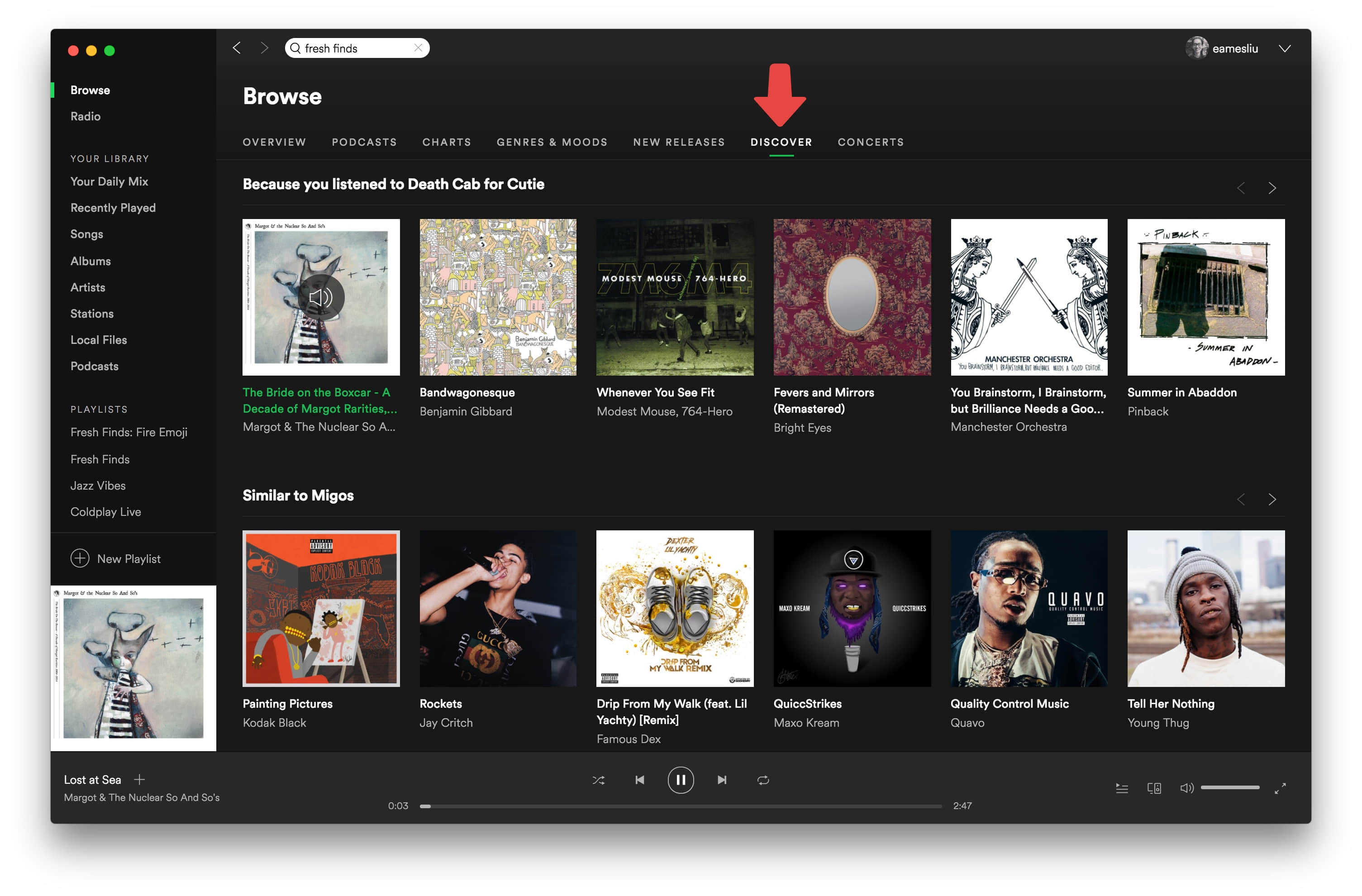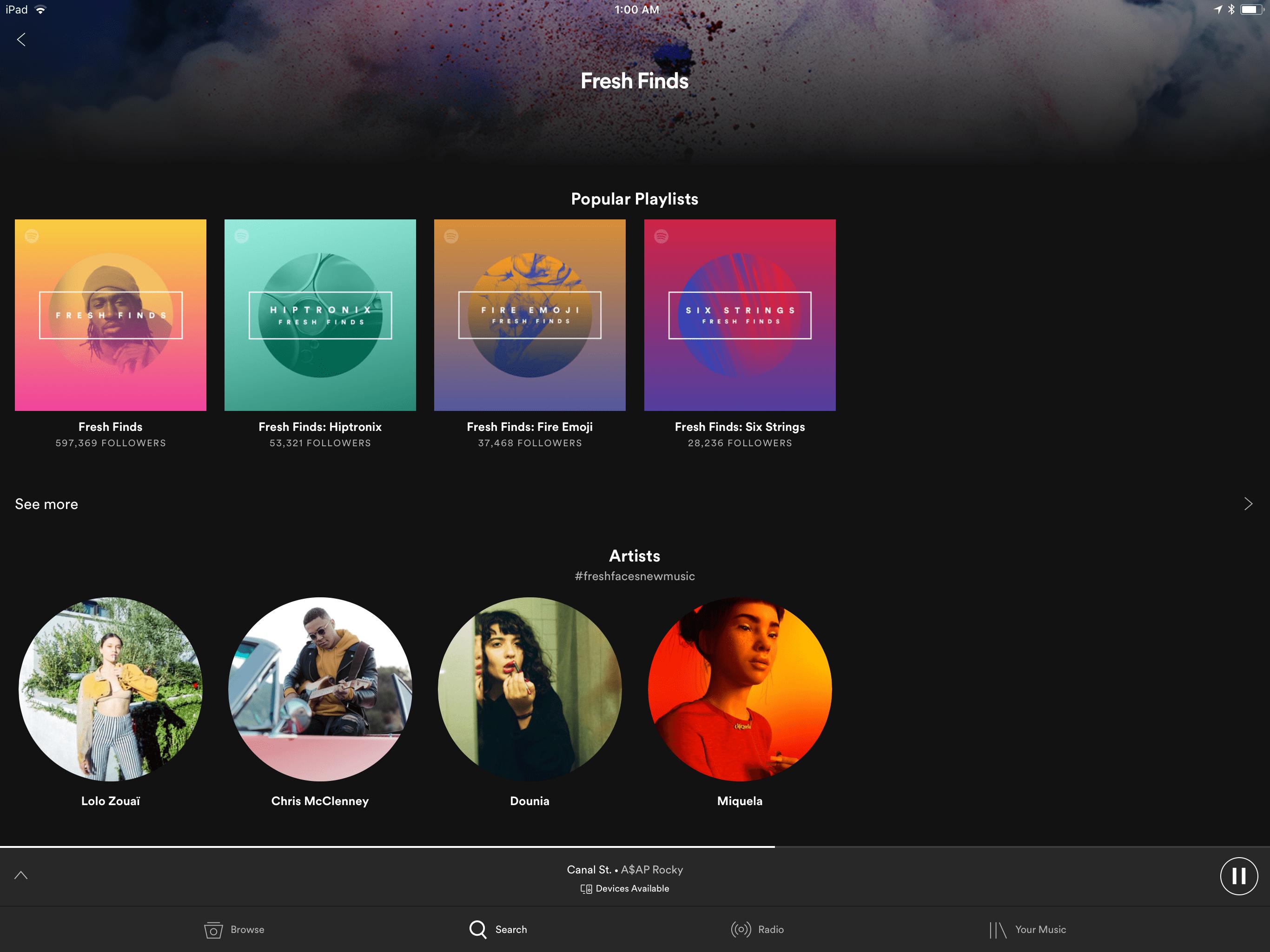 Fresh Finds 也是和 Discover Weekly 类似,不过更关注未被大众发现的新歌曲和新歌手。Spotify 通过自己的算法,预测哪些音乐将会越来越火,然后把这些单曲和音乐人提前推荐给你。