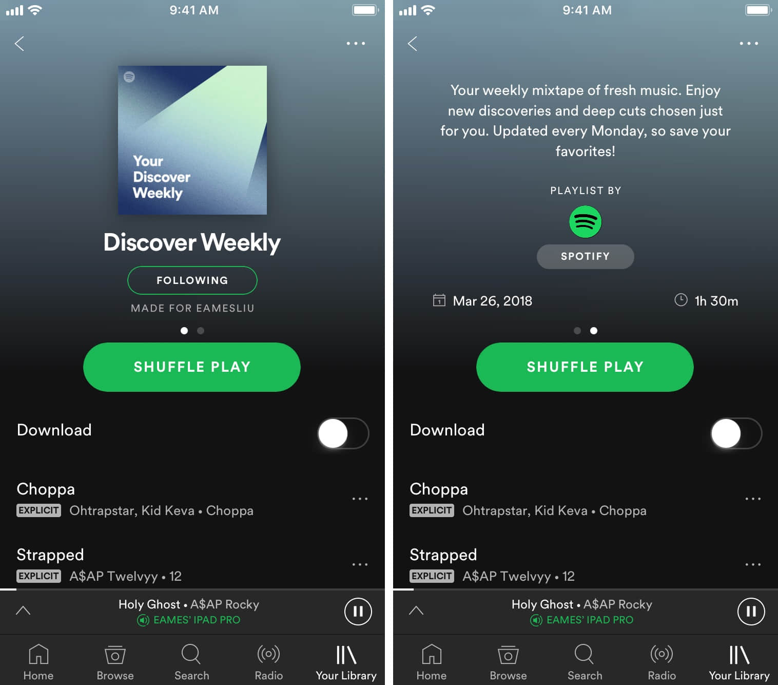 其实上面提到的这些方法,有几个最后创建出来的效果都差不多。你可能会觉得这些功能有点重复,但其实我们每个人想找新歌的动机、心情、场景都是不相同的,Spotify 做得出色的地方就在于,给了我们提供了多样化的发现渠道,不论你是因为什么原因,都能通过 Spotify 找到想要的音乐。