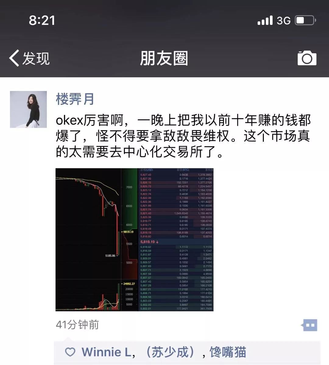 在「北纬31度」区块链交流群,一位朋友回忆道:“我是亲身经历者,眼瞅着下跌,眼瞅着期货价格不动了,眼瞅着一个大佬2000多万爆仓。“