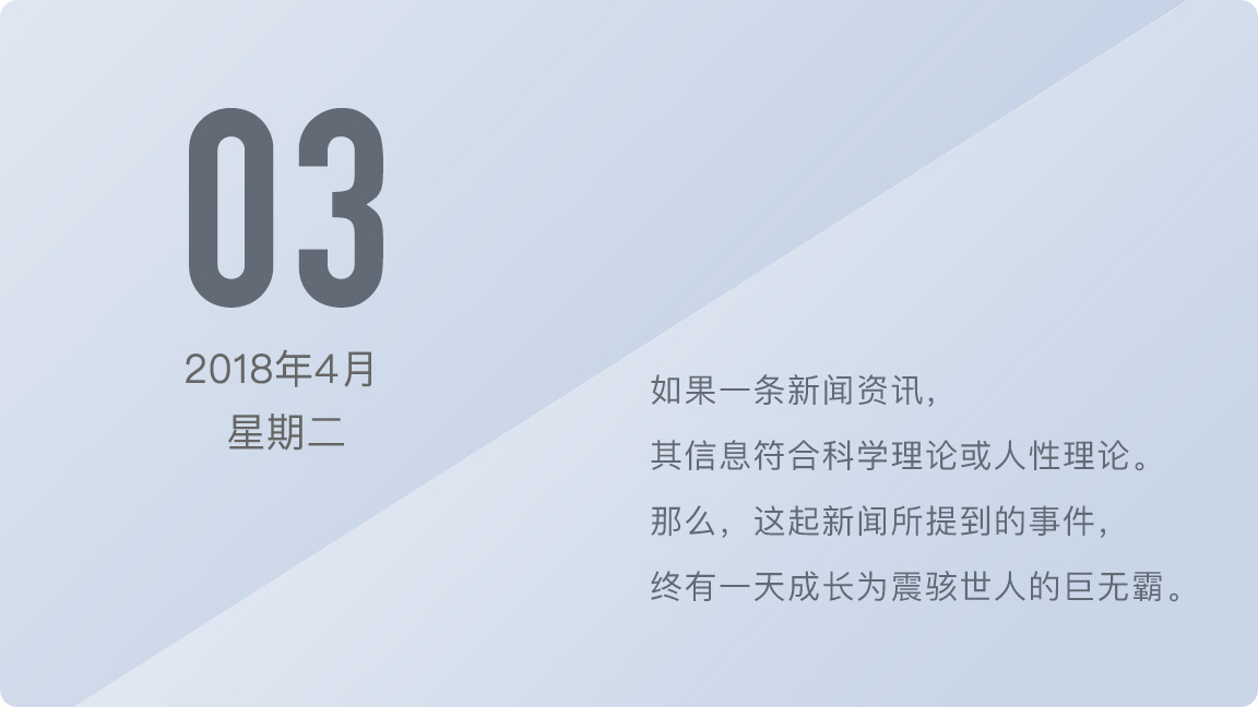 如果一条新闻资讯,其信息符合科学理论或人性理论。那么,这起新闻所提到的事件,就会在历史长河中慢慢发酵,这起事件或商业机构,就会慢慢成长壮大,或许它起初并不起眼,不引人注意。但慢慢的,这起事件就会汇聚而成历史潮流,这家商业机构就会获得越来越多的资源,终有一天成长为震骇世人的巨无霸。